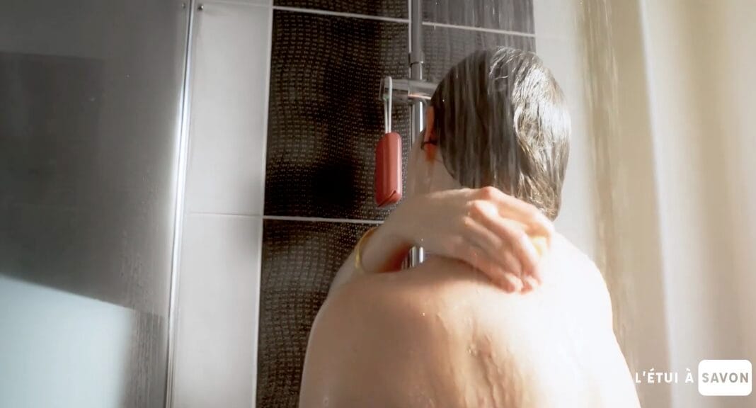 15 millions de gels douche jetés par mois ! SOLUTION : Notre étui + 1 savon solide