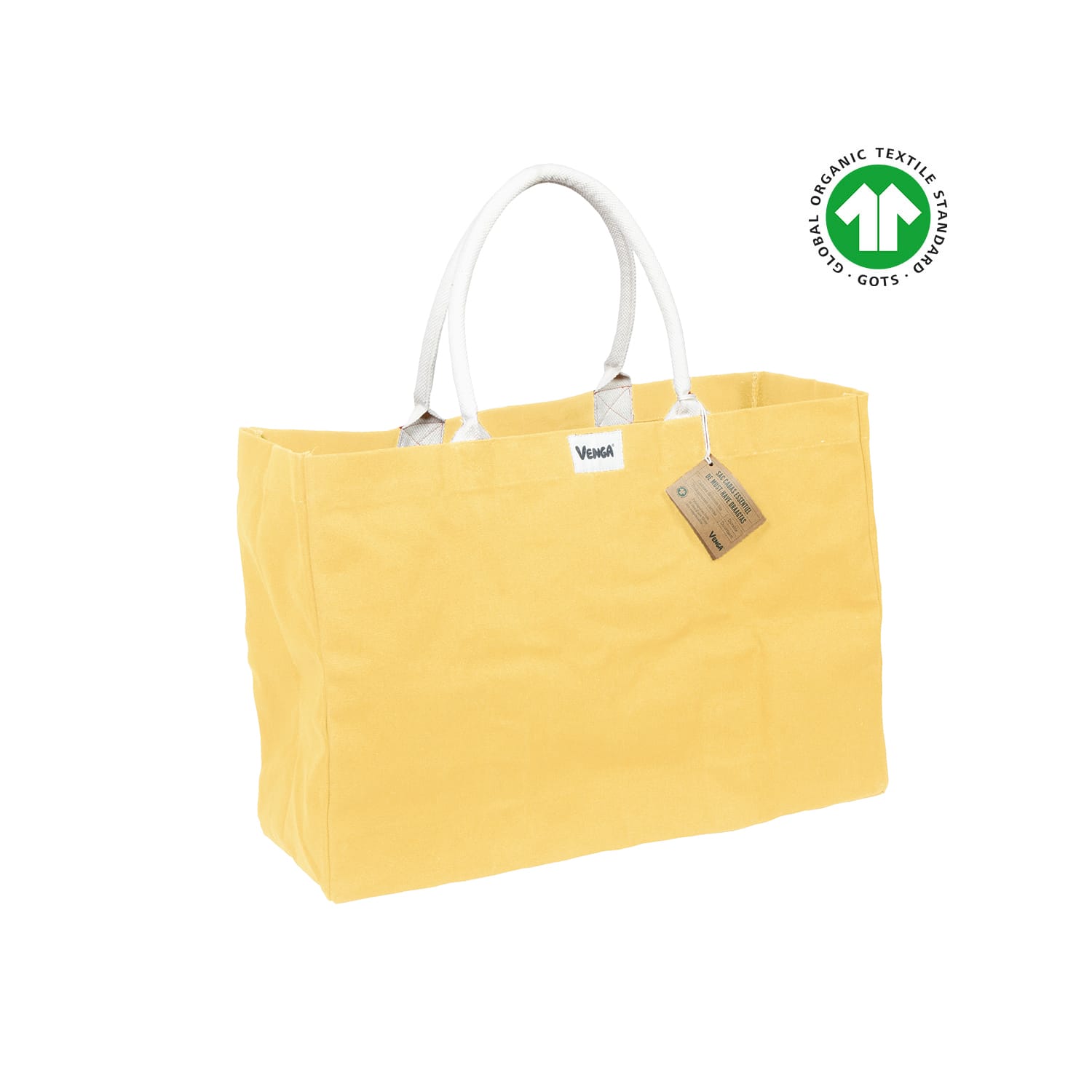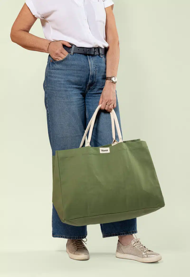 - Toile en coton bio épaisse : Fabriqué à partir d’une toile épaisse de coton bio de 500 g/m², ce cabas est conçu pour durer. Contrairement aux tote bags en toile plus légère, souvent fragiles et nécessitant un remplacement fréquent, le sac Venga mise sur une solidité accrue, garantissant une longévité exceptionnelle.