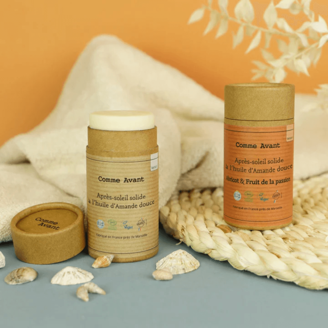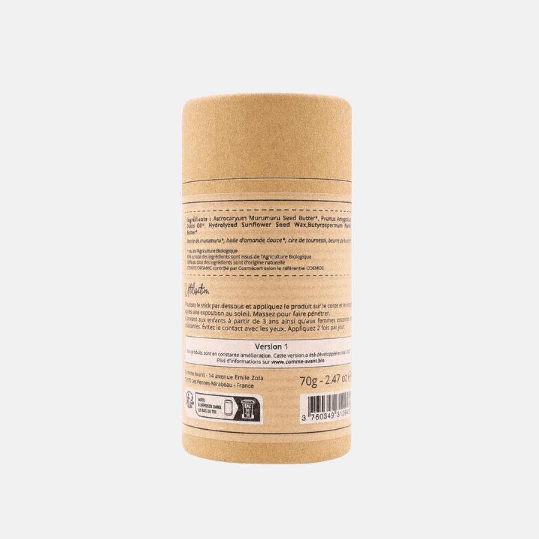 De la cire de candelilla bio à la place de la cire de tournesol pour obtenir une texture plus crémeuse et plus facile à appliquer sur la peau, sans effet collant.