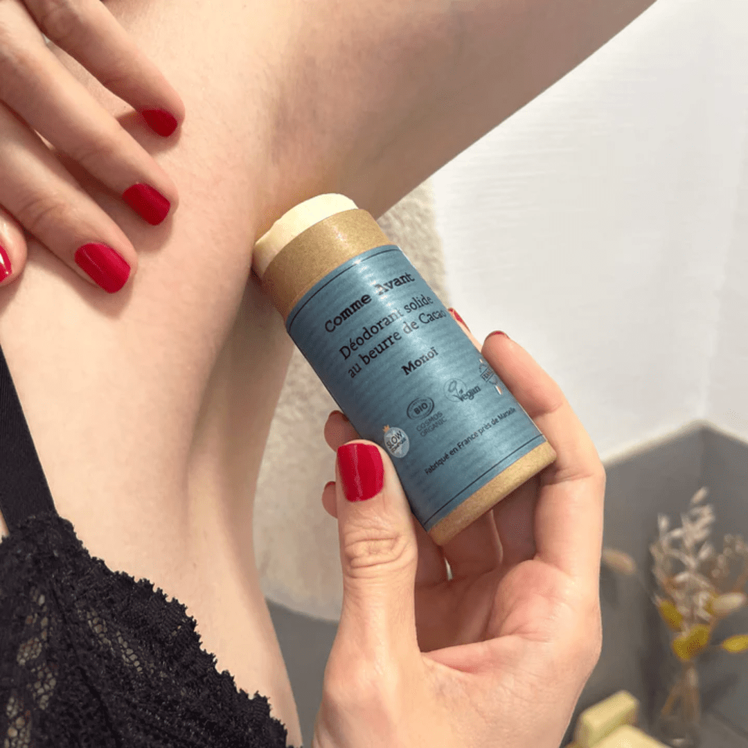 Avec ses deux actifs déodorants efficaces et d’origine naturelle, notre déodorant au monoï est efficace pour lutter contre les mauvaises odeurs et la transpiration tout au long de la journée.