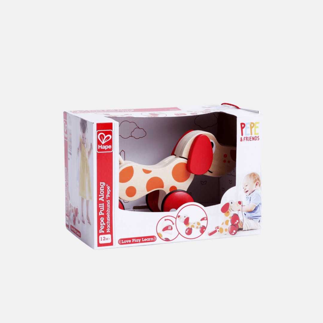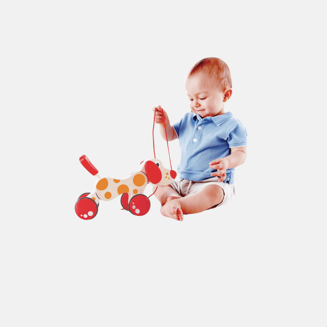 Avec le chien Puppy à tirer, encouragez votre enfant à faire ses premiers pas. Faites-en un jeu amusant pour voir la distance que votre petit peu faire avec son nouveau compagnon.