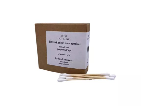 C’est le fameux “coton tige”Ces bâtonnets ouatés sont en bambou bio 100% biodégradable, naturel et écologique, ils sont doux pour les oreilles.