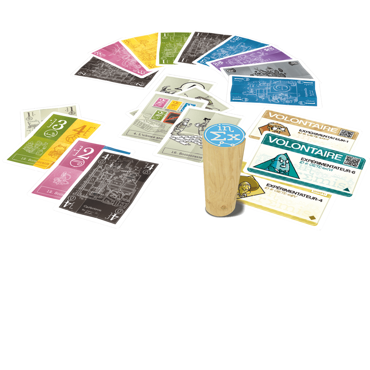 - Contenu : 1 livret de règles (48 p), 1 livret Science (68 p.), 1 totem bois, 2 plateaux, 110 cartes