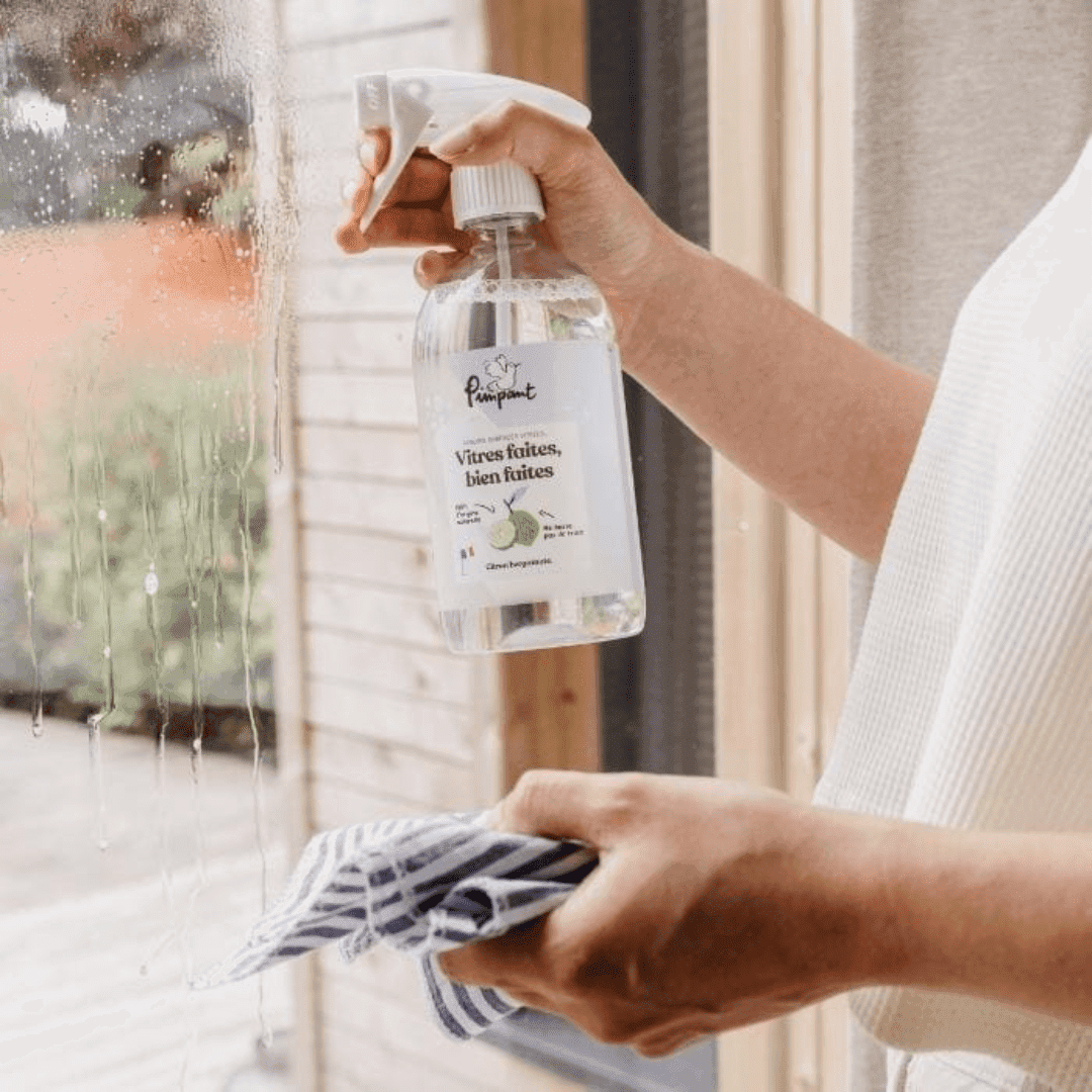 Chez Pimpant, on a souhaité rendre les produits du quotidien plus sympas et pratiques à utiliser, mais aussi tout doux pour la santé de toute la famille. Et le produit vitres, ça fait partie des produits qui contiennent des ingrédients de synthèse et volatils (qui s’envolent quand on les utilise). Pas top pour les poumons. Alors on a créé un nettoyant vitres naturel et rechargeable certifié éco-détergent par Ecocert. 🌿