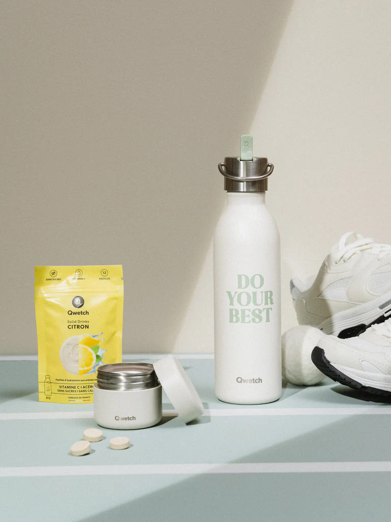 La bouteille isotherme polyvalente et compacte en inox recyclé conçue pour suivre vos efforts. Que ce soit avant, pendant ou après votre activité, le bouchon sport permet une hydratation facile et rapide. Soyez actif à votre propre rythme.