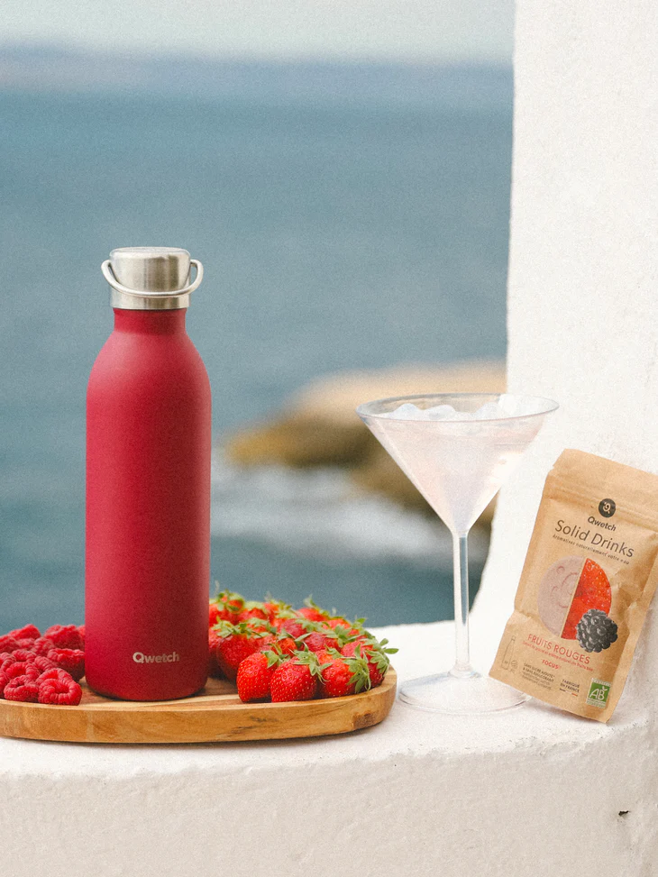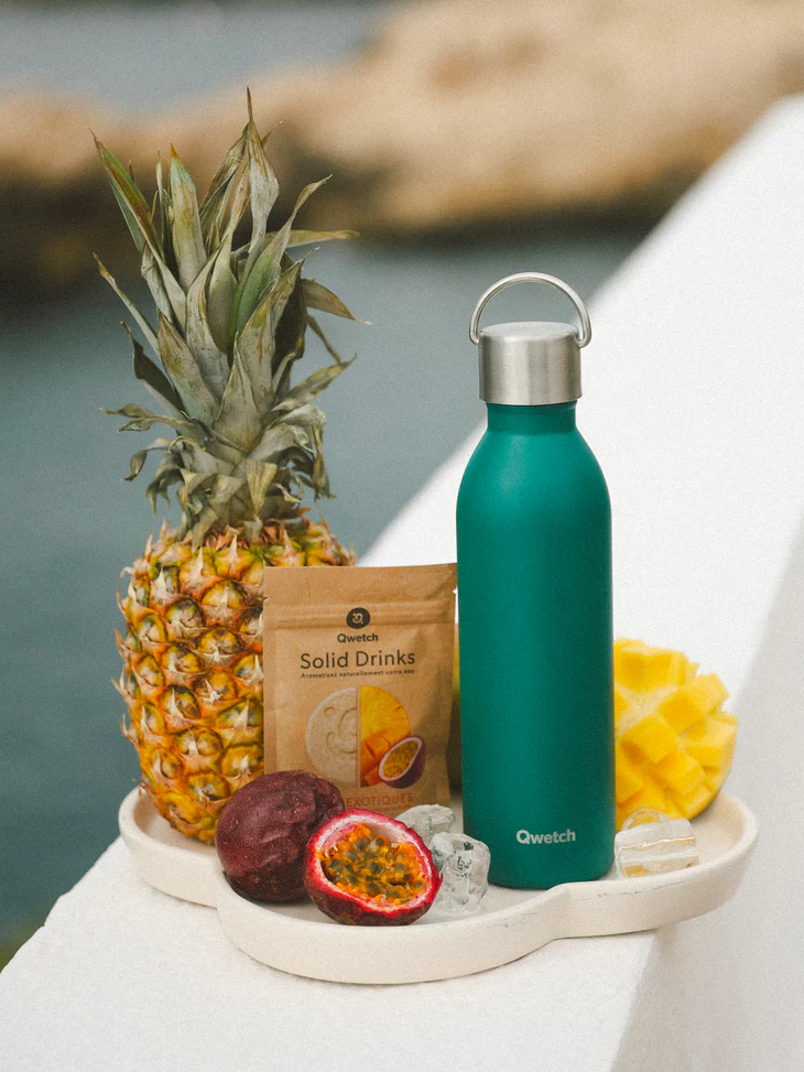 La bouteille isotherme polyvalente et compacte en inox recyclé conçue pour suivre votre rythme. Ergonomique, sa anse en inox permet une utilisation facile au quotidien, que ce soit au sport comme au bureau. Votre clé pour une journée active.