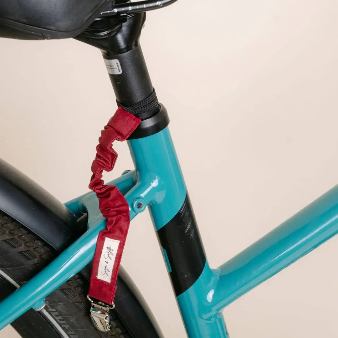 Très facile d’utilisation, vous n’avez qu’à nouer l’élastique sous votre selle, autour de la barre, en passant la pince dans la boucle.