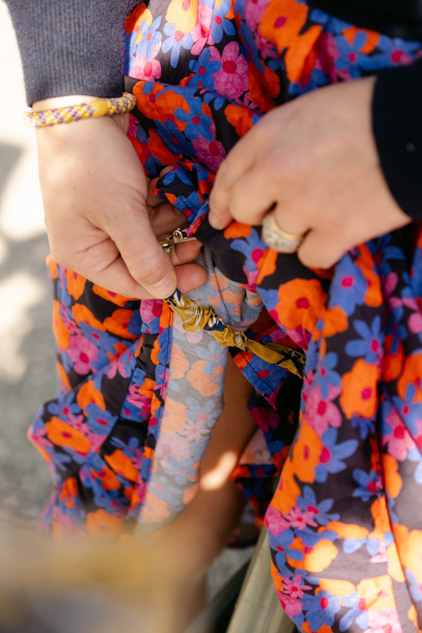 Aïe, c’est la chute ! Pas d’inquiétude, notre attache jupe vélo se détache en une fraction de seconde, sans risque que vous restiez accrochée au vélo.