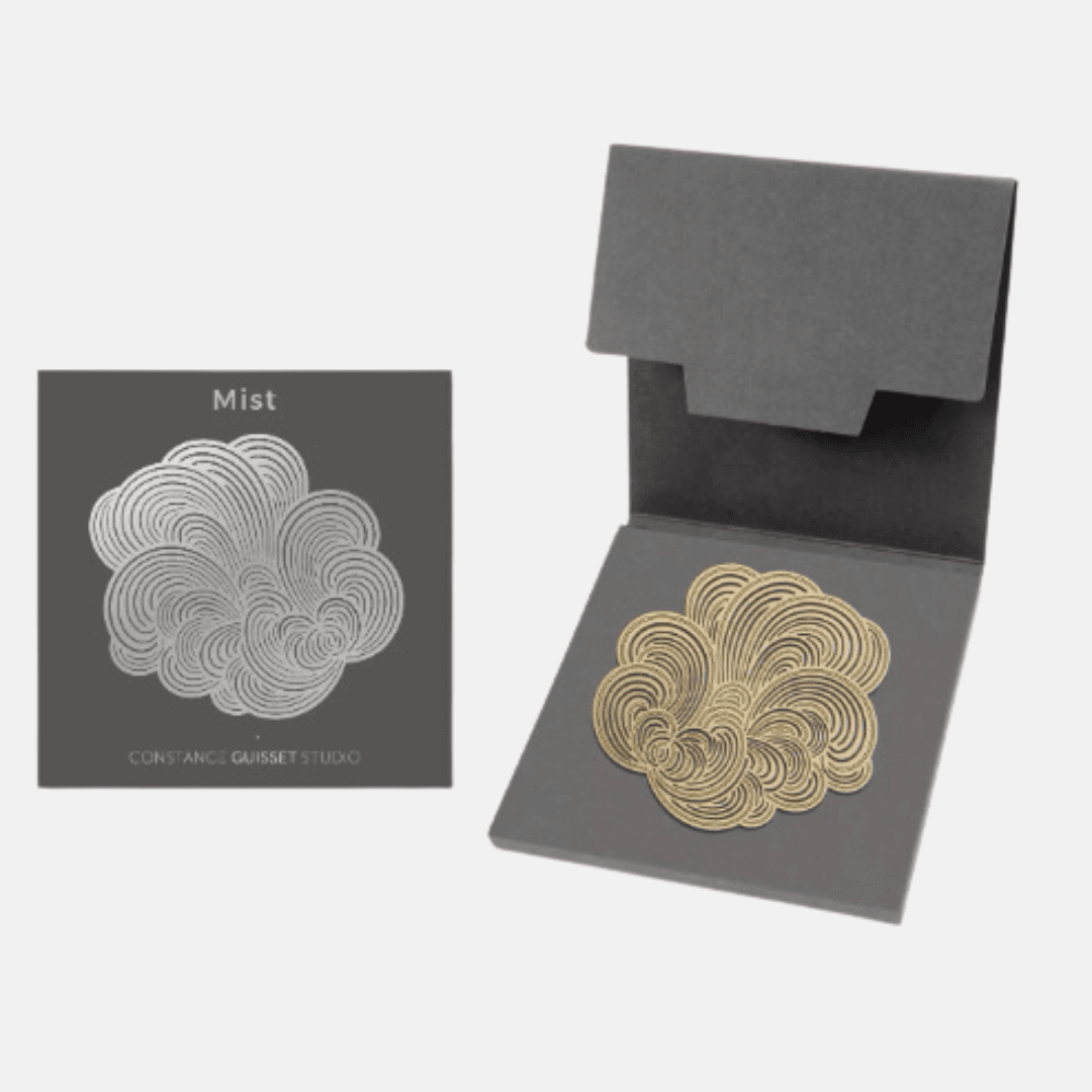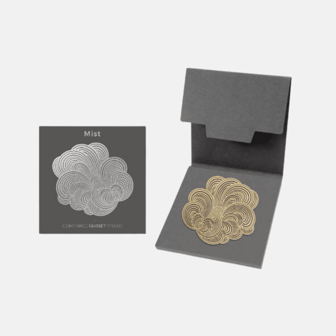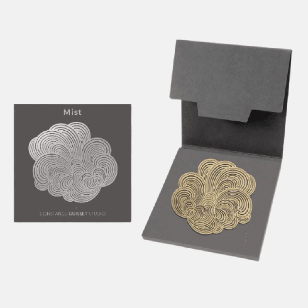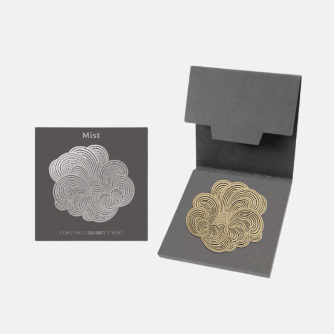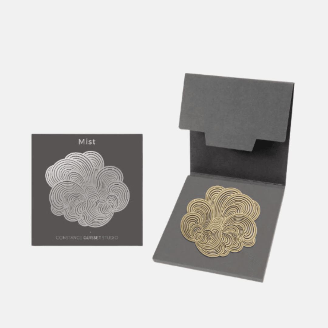 Des broches au design moderne, dessinées par Constance Guisset Studio : Mist est une collection de broches en volutes aériennes. L’entrelacement des lignes dessine une brume mystérieuse.
