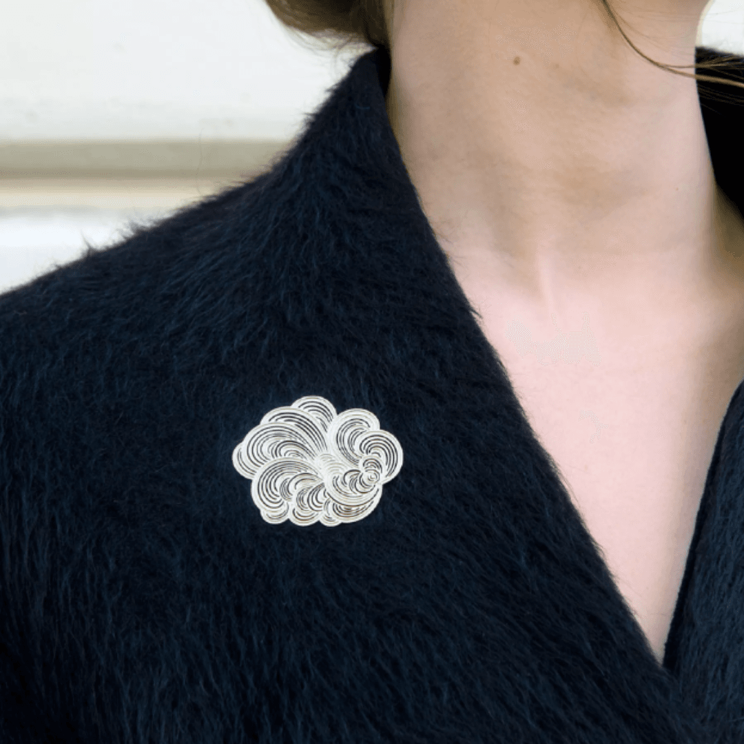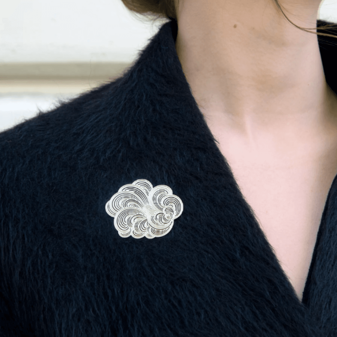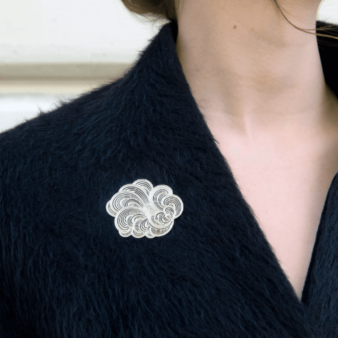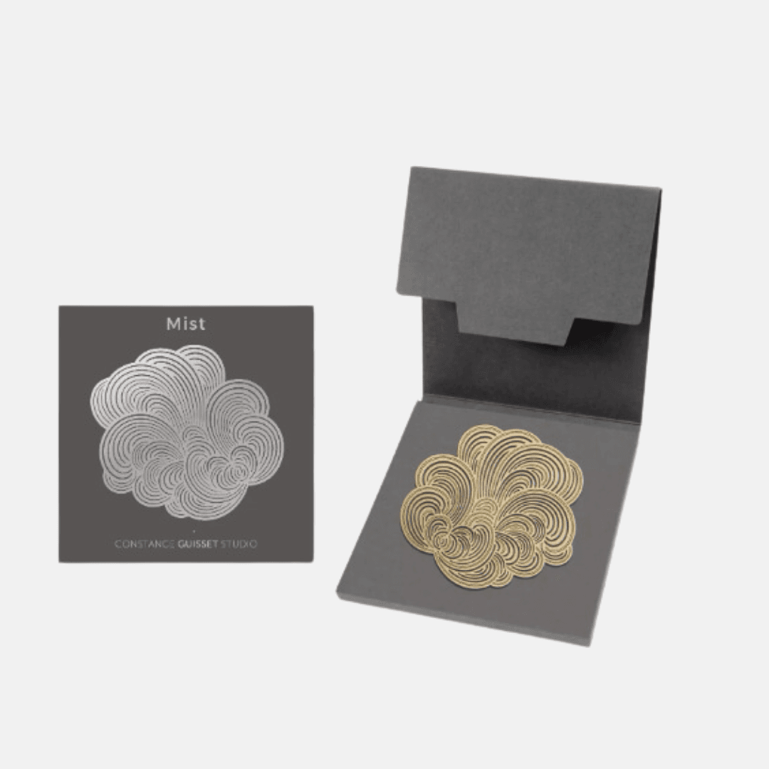 Des broches au design moderne, dessinées par Constance Guisset Studio : Mist est une collection de broches en volutes aériennes. L’entrelacement des lignes dessine une brume mystérieuse.