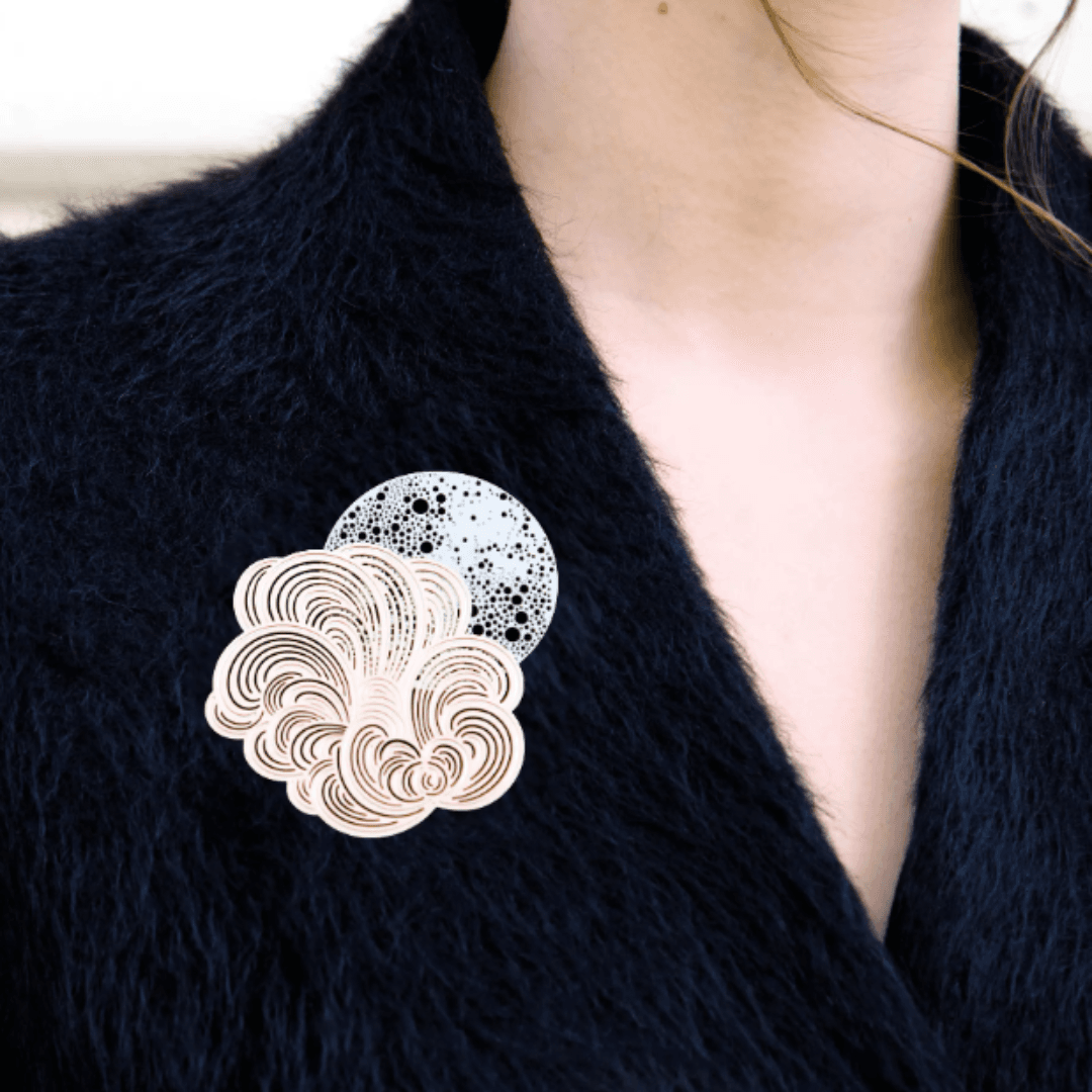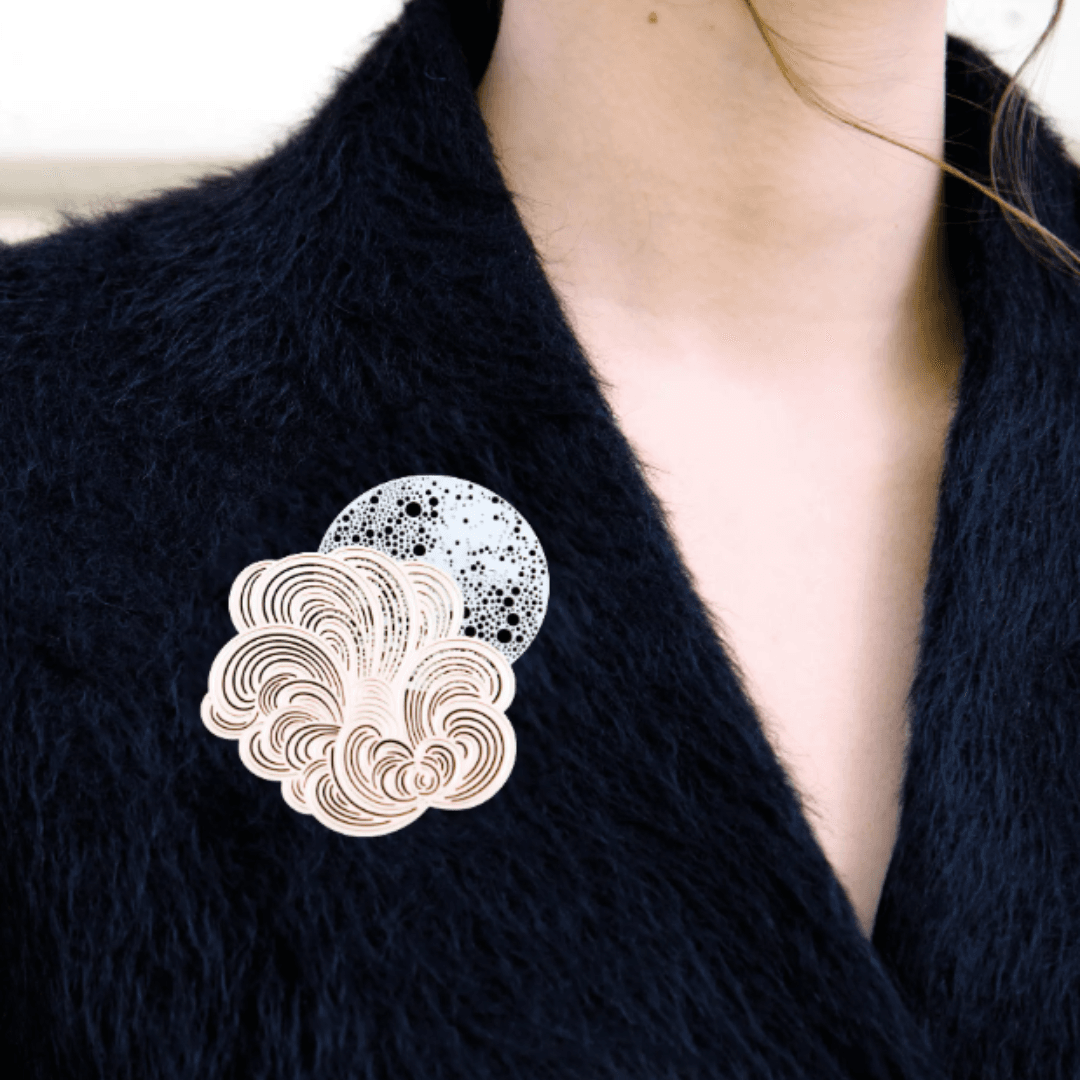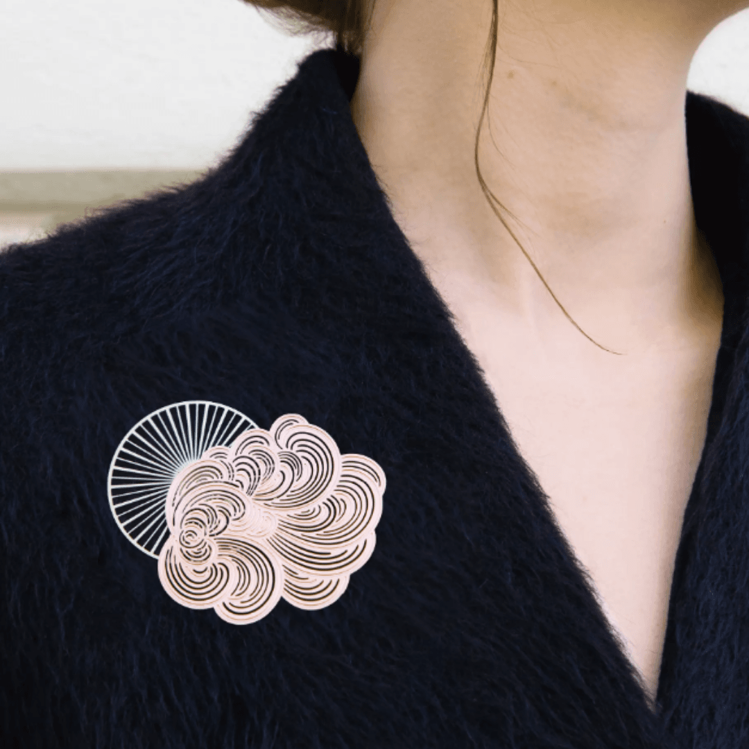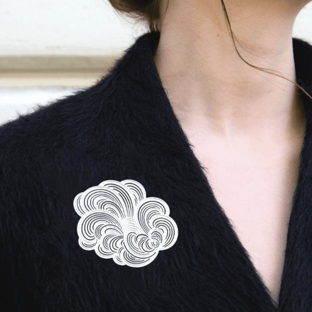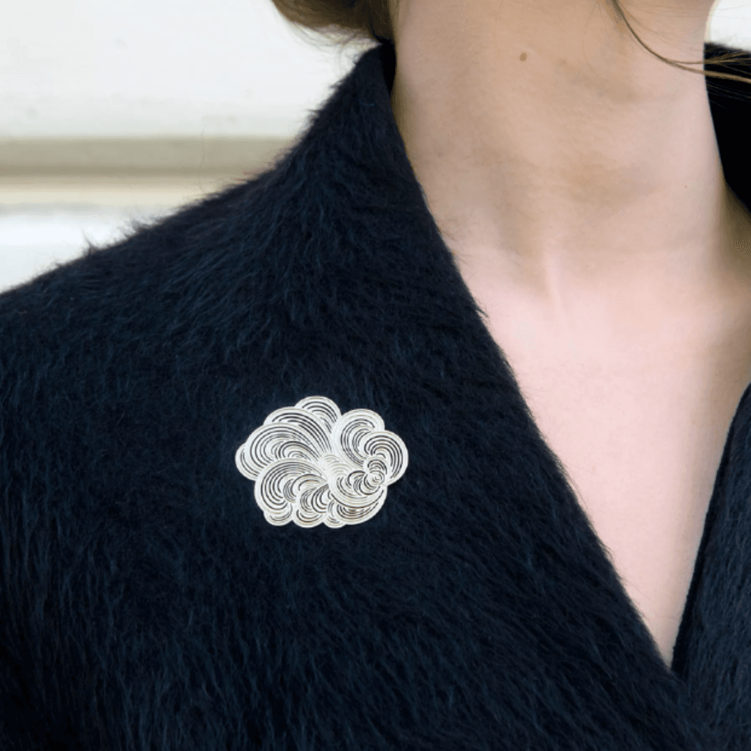 Des broches au design moderne, dessinées par Constance Guisset Studio : Mist est une collection de broches en volutes aériennes. L’entrelacement des lignes dessine une brume mystérieuse.