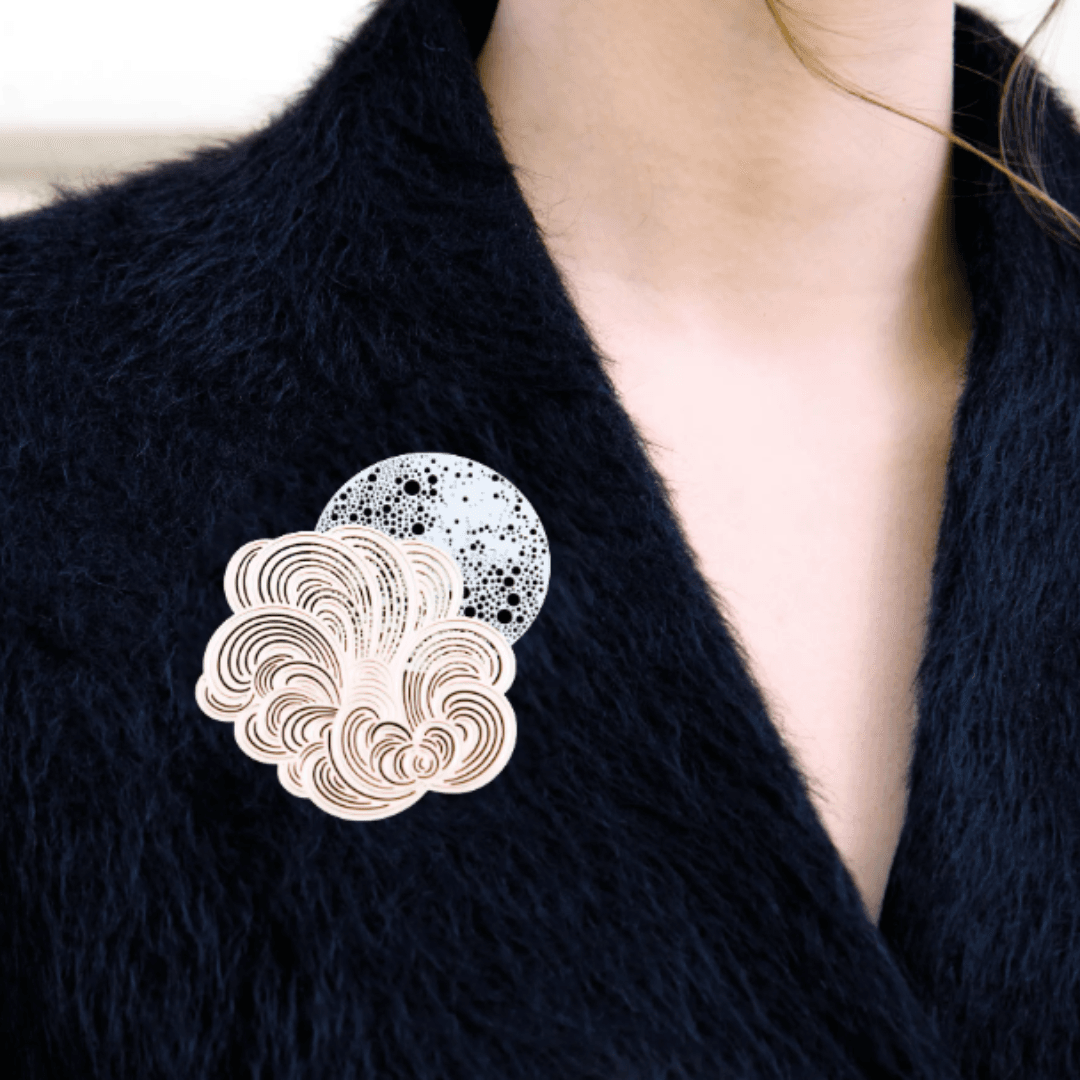 Ces broches sont assemblées par des mains expertes formées à la bijouterie et à l’horlogerie. Le soleil a rendez-vous avec la lune !